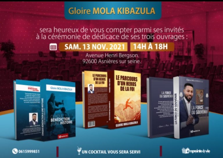 Gloire Mola est prédicateur, écrivain, conférencier, motivateur et coach de nombreux hommes, notamment des pasteurs. Il est également homme d’affaires depuis 2014.
